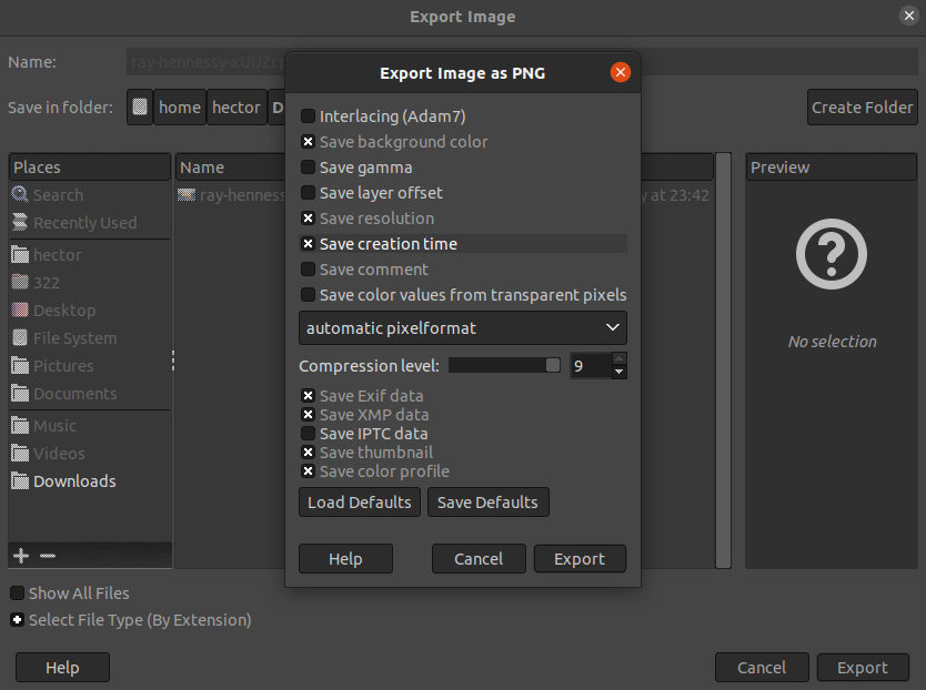 GIMP will ask what information to preserve. If not sure, then go with the default options. Click “Export” to finish the process.