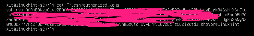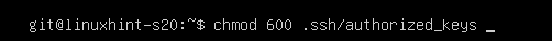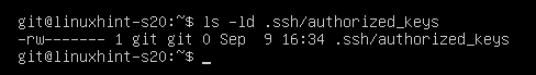 As you can see, only the git user has read (r) and write (w) permissions to the file .ssh/authorized_keys.
