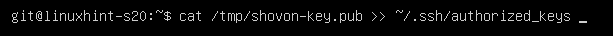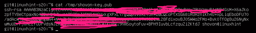 Let’s say, the client sent his/her public key to the Git server manager. The manager uploaded the public key to /tmp/shovon-key.pub file on the Git server.
