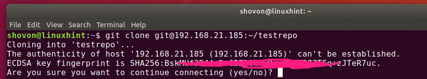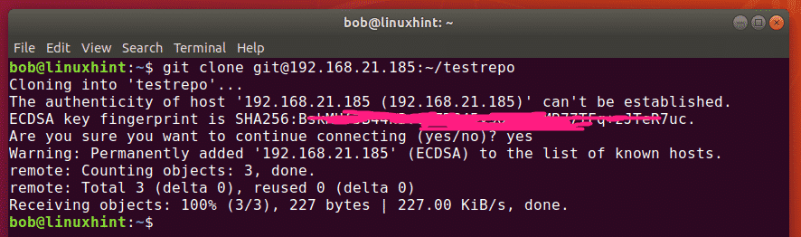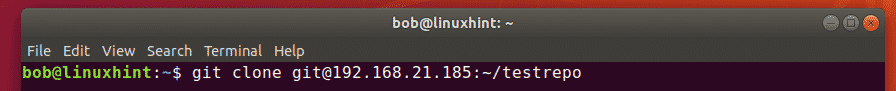 Now, bob can clone the testrepo Git repository from the server as follows: