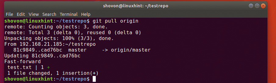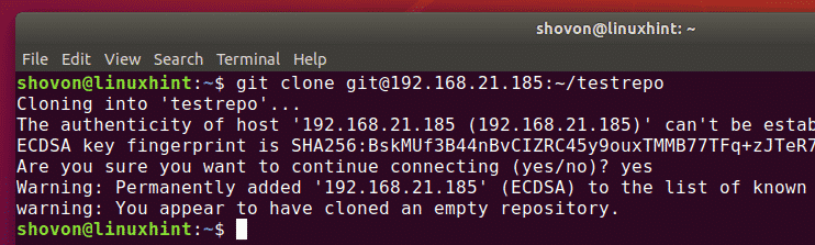 Now, the client only needs to know the IP address of the Git server in order to access the testrepo Git repository.