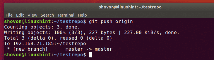 Now, the client can add commits to the testrepo/ repository and push the changes to the Git server.