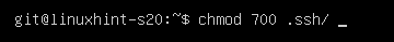 Now, allow only git user to have read, write, exec permissions on the directory .ssh/ as follows: