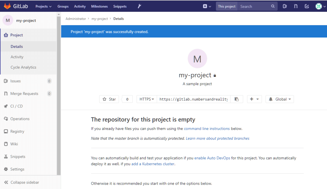 Now that we have to ourselves a Container Registry, let’s create a new project using the GitLab web UI and verify that it works.