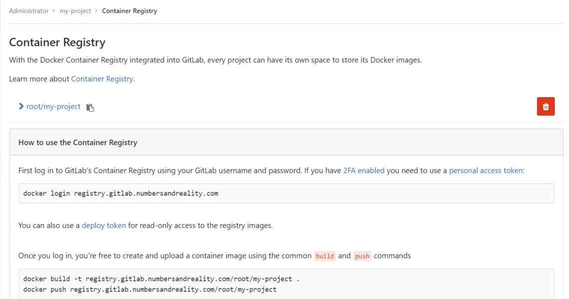 If you are unsure what your container’s tag should be, visit your project’s registry page and there will be clear instructions for it. If the docker push command has worked properly, you can see a new docker image getting uploaded (or pushed) in your GitLab instance. Like it was shown in my case: