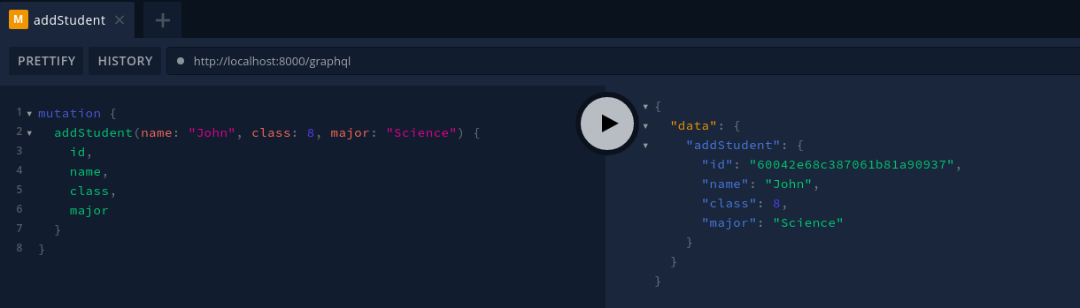 addStudent( name: String!, class: Int!, major: String! ): Student