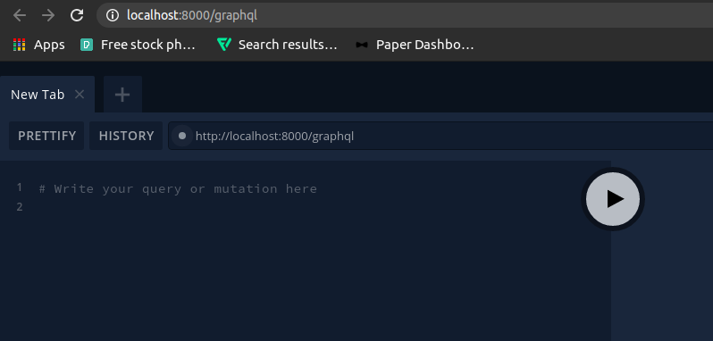 We have our graphQL server up and running on port 8000, and it is time to test the GraphQL API. Open the GraphQL webpage in the browser by visiting the following url.