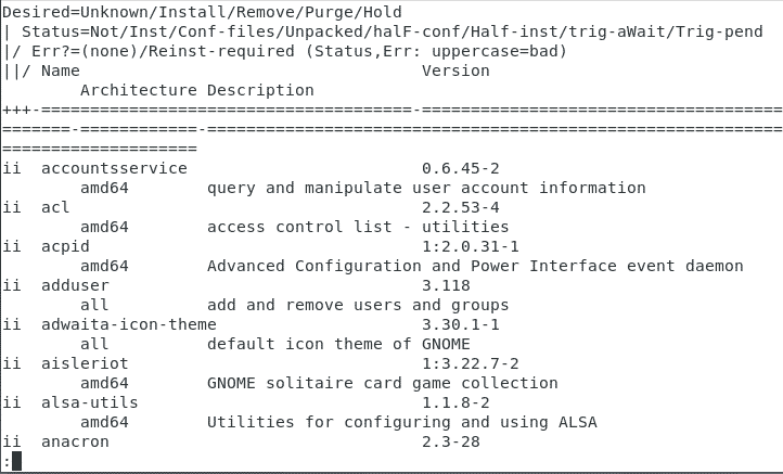 You should also closely monitor all the packages installed on your system so that you can regularly remove any unnecessary packages. To view all the installed packages in Debian 10, perform the following steps: