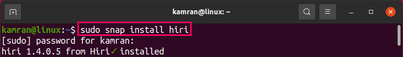 It is the best and the recommend method to install Hiri on Ubuntu 20.04. Snap is an application package manager for all popular Linux distributions. The Ubuntu 20.04 comes with Snap by default. Type the given-below command to install Hiri via Snap: