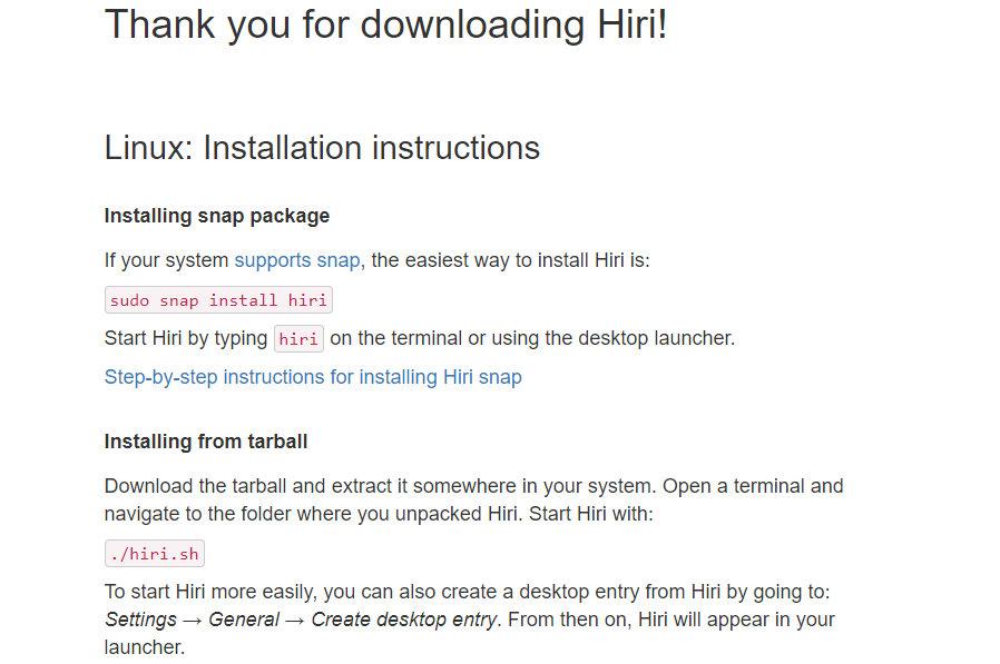 Visit the Hiri official website (https://www.hiri.com/download_hiri/linux/) and download the Hiri tarball.