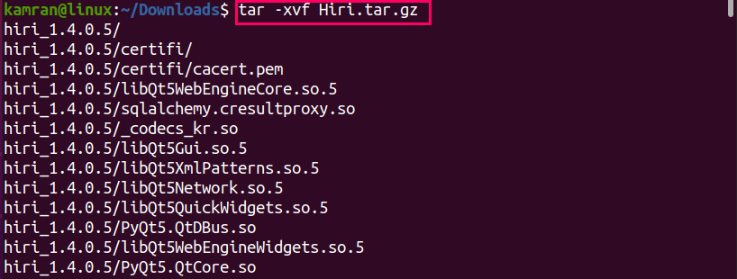 Next, navigate to the ‘Downloads’ directory and extract the tarball using commands: