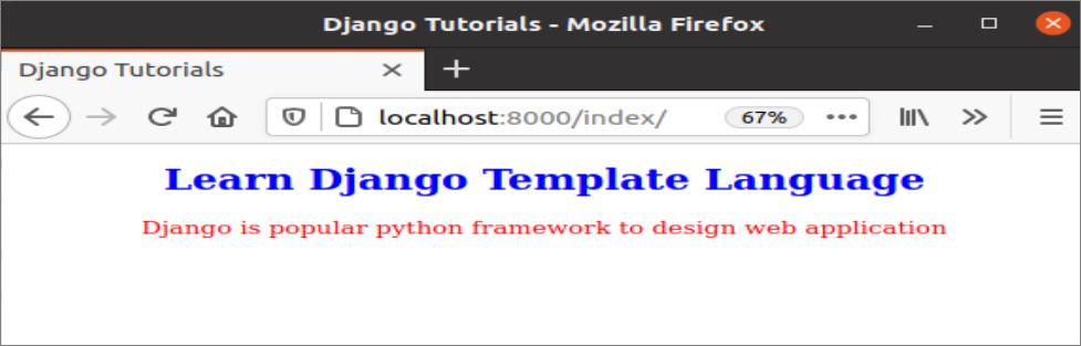 <h1 style="color:blue">Learn Django Template Language</h1>