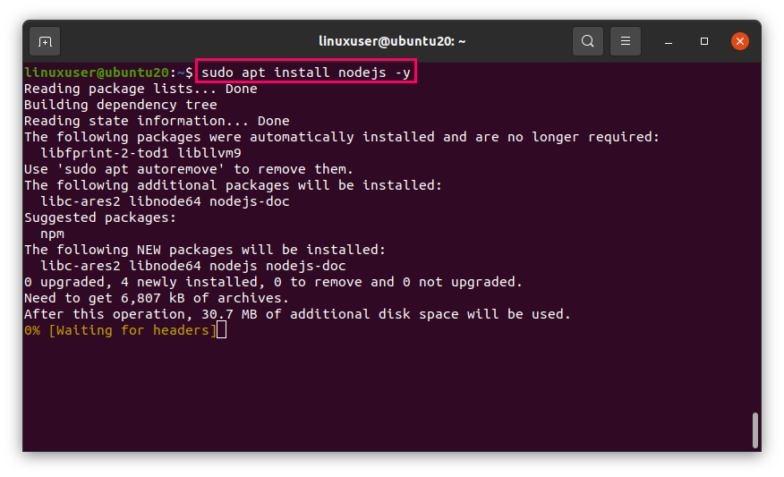 Install Node.js on Ubuntu 20.04 through NodeSource PPA