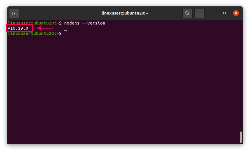 As you can see, version 10.19.0 of Node.js and version 6.14.4 of NPM is installed.