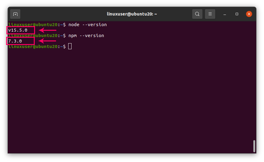 Let’s verify the versions of Node.js and NPM by typing the commands.