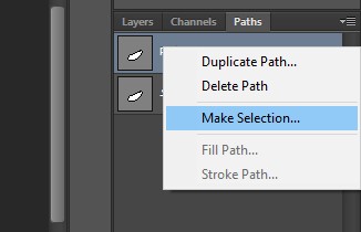 The next step is to convert the path you drew with the Pen Tool to a selection. You can do this by right-clicking on the path in the Paths Panel. Now click on the option that says “Make Selection”.