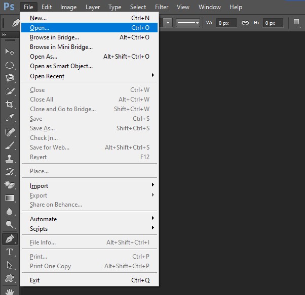 The first thing you need to do is to open the image in Photoshop. You can open the image that you want to remove background from by clicking on File-> Open. Browse your computer, select the image, and click open.