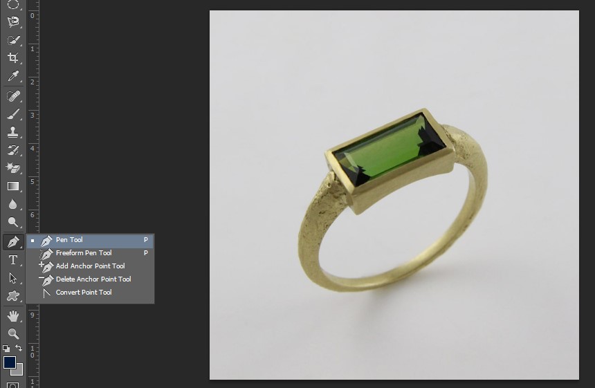 Now, pick the Pen Tool from the side menu. This is what we are going to use to remove background from the image. The Pen Tool icon is easy to spot. Click on it to select it, or hot the shortcut ‘P’ on your keyboard.