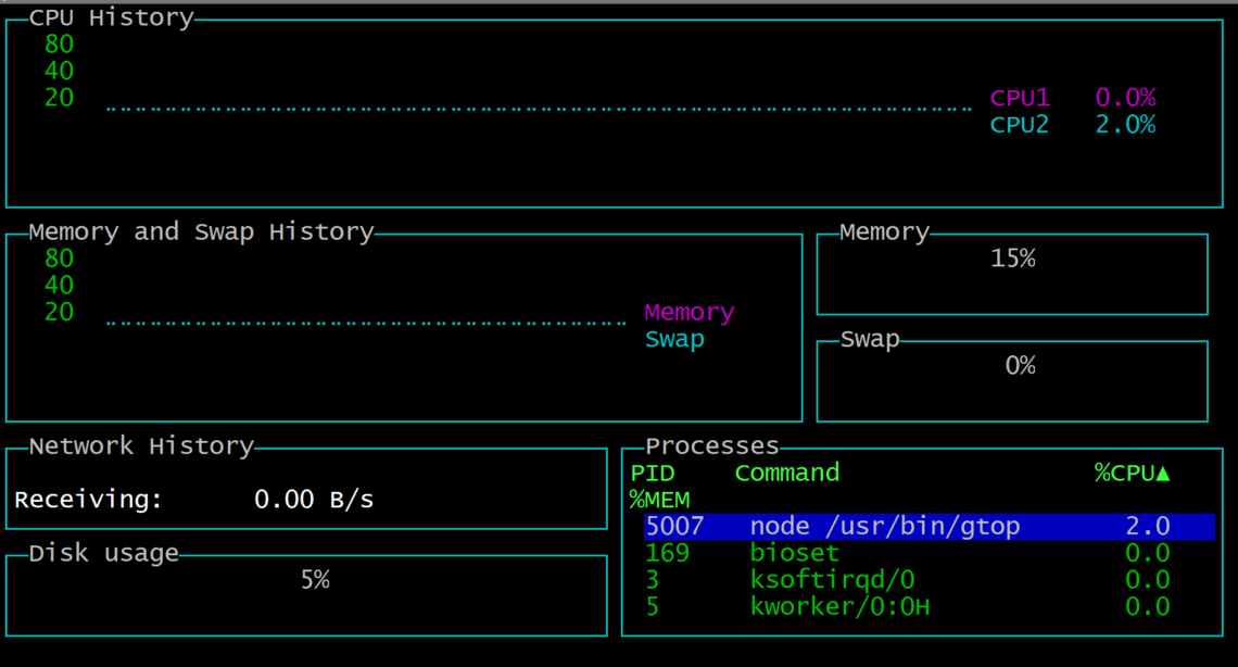 Now, like any command utility, you can call upon gtop by running: