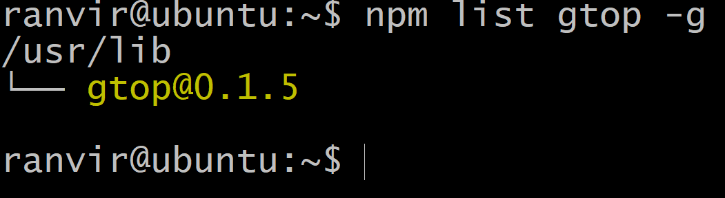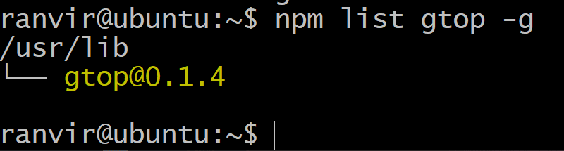 To exit simple hit q and you will fall back to the terminal. Because there are too many dependencies for gtop simply running npm list -g won’t help us know the verison of gtop. So we can try this instead: