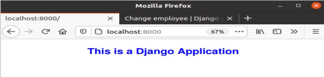 return HttpResponse("<h1 style='color:blue'>This is a Django Application</h1>")