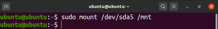 From the table, we have determined that the boot partition is /dev/sda5. Now, mount it by running this command.