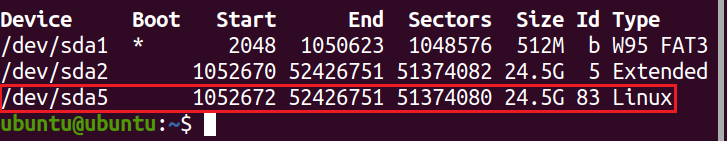 We need to identify the root filesystem partition. The following command will list all the partitions in the system. The key point of the output is the last section, where there is a short table of partitions.