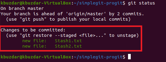 Stashing literally means keeping something stored or saved temporarily. For using the “git stash” command in Ubuntu 20.04, we have made use of a test repository named simplegit-progit. The exact sequence of steps is discussed below: