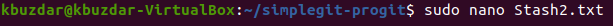 Then we have created another text file in the very same project repository named Stash2.txt by issuing the following command: