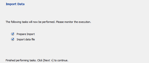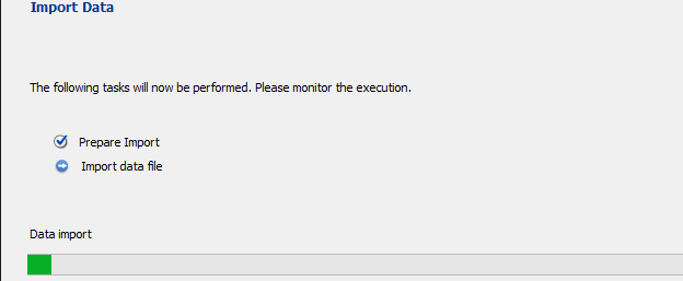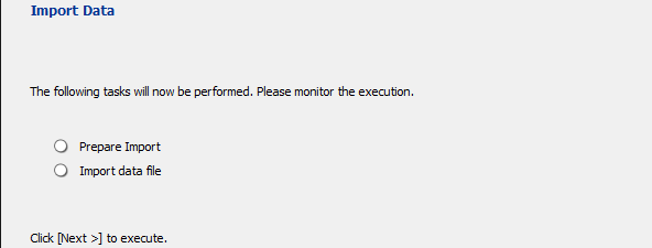 Now, it has two steps listed to import the file data. Firstly, it will prepare the import, and after that, it will import the data file. We have to just tap on the ‘Next’ button to initiate the import process.