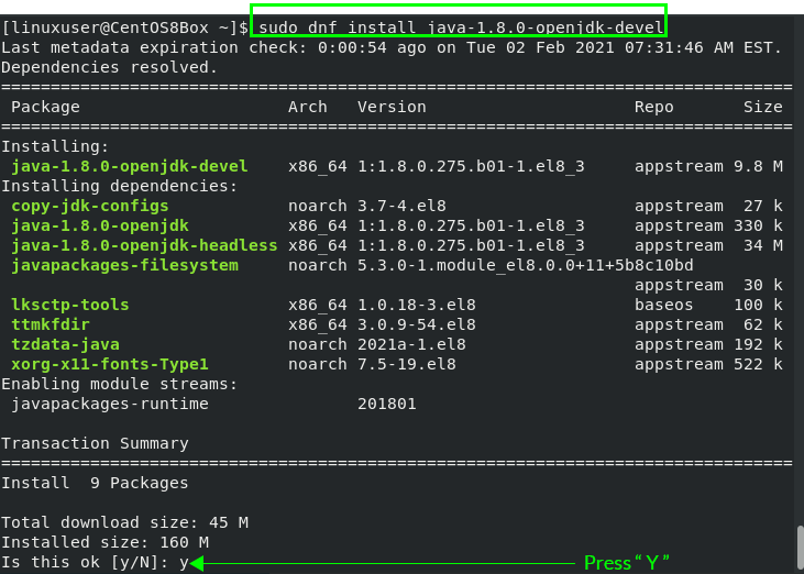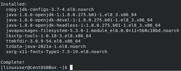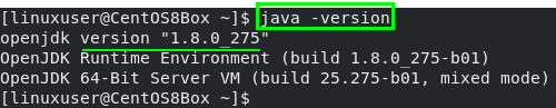If it is not installed on your system, you can install it using the procedure given below or pre-installed on your system; you can skip the installation part of OpenJDK on CentOS 8.