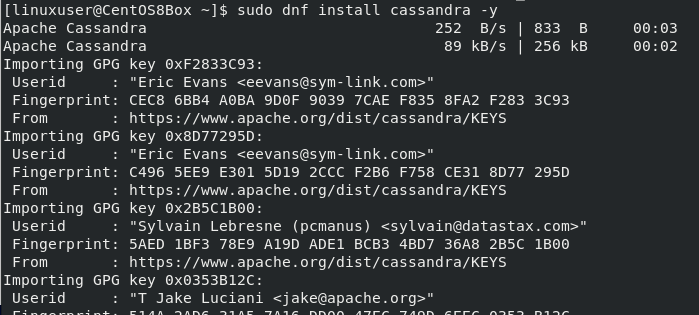 Apache Cassandra can be installed by downloading the RPM package through the official repository of Apache Cassandra.