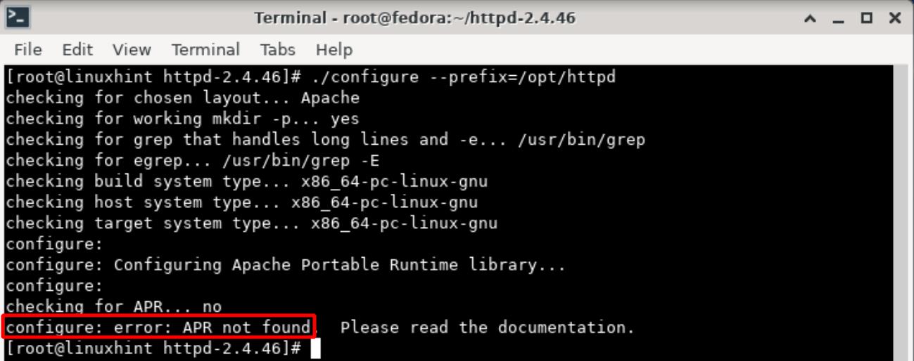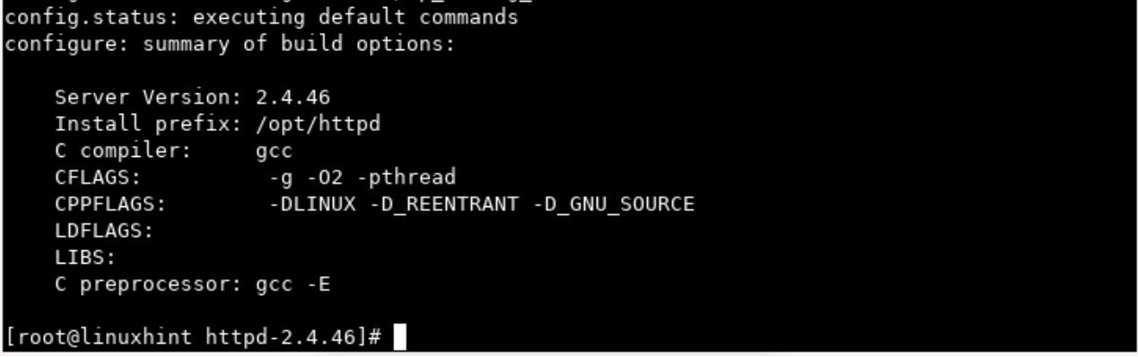 Step 4. We now need to run the configure script to configure the apache. This is available inside the root directory of apache, i.e., the current directory. But before running this script, make sure where you want to install apache.