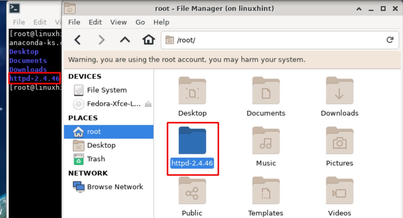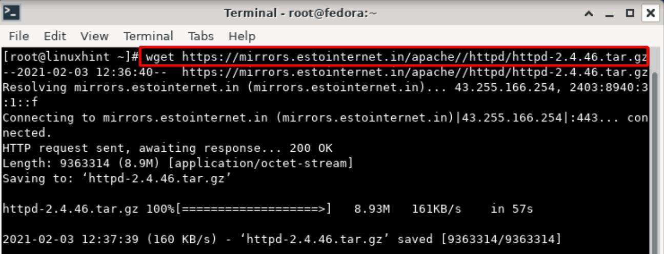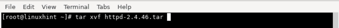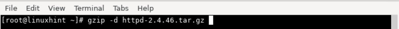 Step 2. Once we get the source file, we can start with the commands’ gzip’ and ‘tar’ to extract the file. The exact name of the file depends on the available version you have downloaded. In our case, it is httpd-2.4.46.tar.gz.