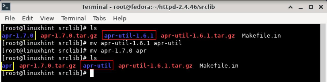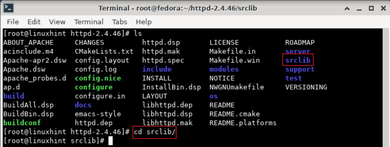 Now extract this directory inside the ‘srclib’ directory, which is available in the apache httpd distribution folder. To extract the file, use the command: