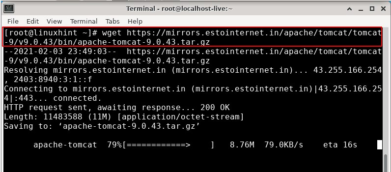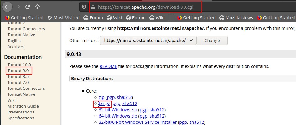 1. To download the Apache Tomcat, visit the Apache Tomcat home page, where you will see different available versions. Alternatively, you can also use the wget command to get the file. For this guide, we are using Tomcat 9.