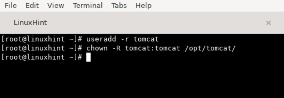 Now we will change the ownership of the tomcat directory to the Tomcat user with the command:
