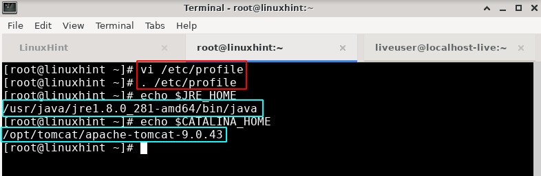 To check if these variables are correctly set, check if the output of the below command is the same as the value for JRE_HOME and CATALINA_HOME: