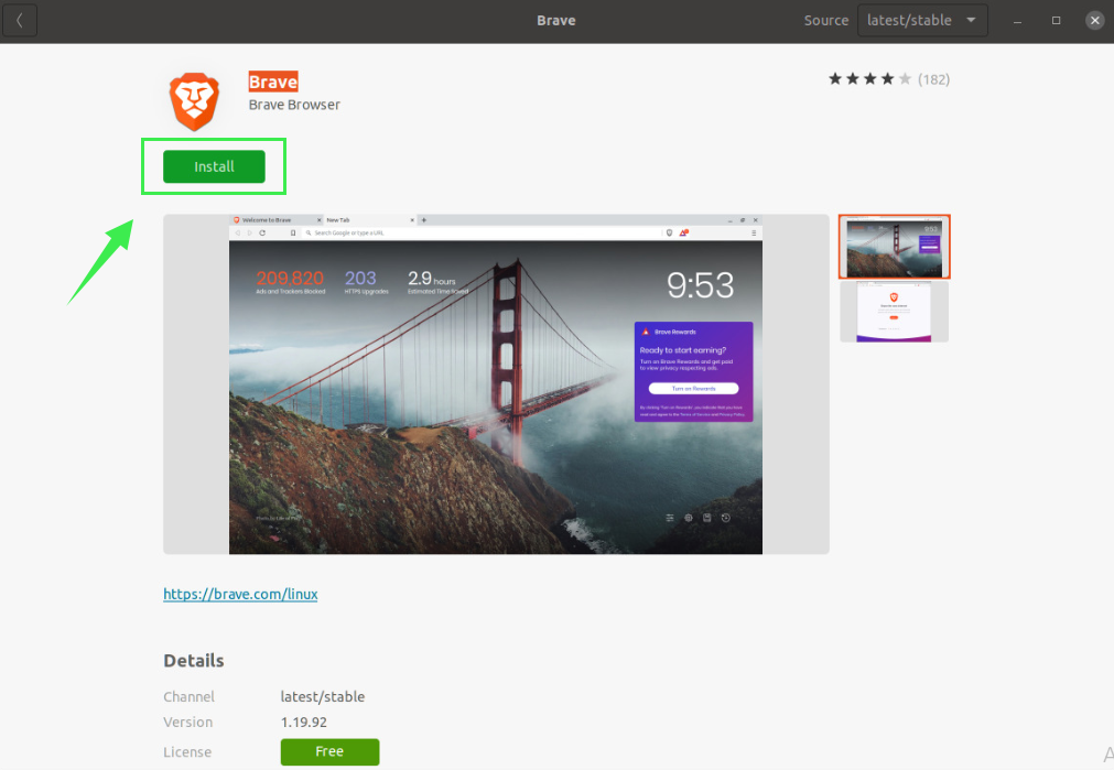 Brave browser can be installed through GUI. It is an easy approach to get a browser on the system.