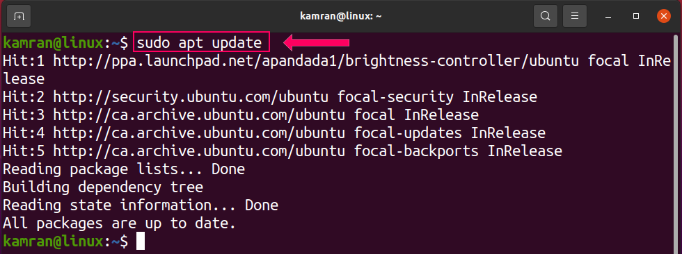 Once the Brightness Controller PPA repository has been added successfully, update the apt cache using the following command: