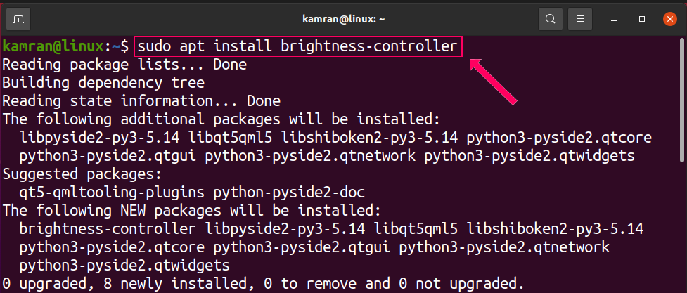 Execute the command below to install the Brightness Controller application in Ubuntu 20.04: