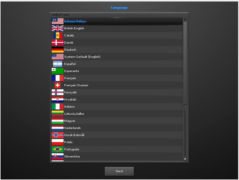Step 3. Now login with your credentials. A startup screen might appear and will quickly fade out. On the next screen, it will ask you to select the language for installation. You can use a usb mouse or keyboard to select the required language. Now hit the Next button to continue.