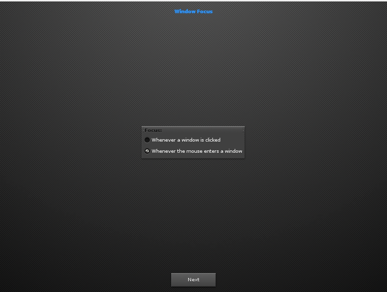 Step 7. After the above window, the configuration process will ask to select a behavior for window focus. If you select the first option, the window will be focused only when a mouse is clicked on it. In the second option, the window is selected whenever the mouse enters it or hovers upon it. We are sticking with the already checked second option.