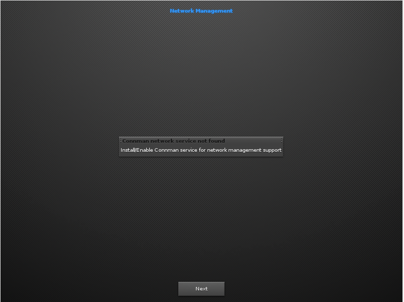 Step 9. If the next screen says ‘Connman network service not found’, just skip the message and hit the Next button: