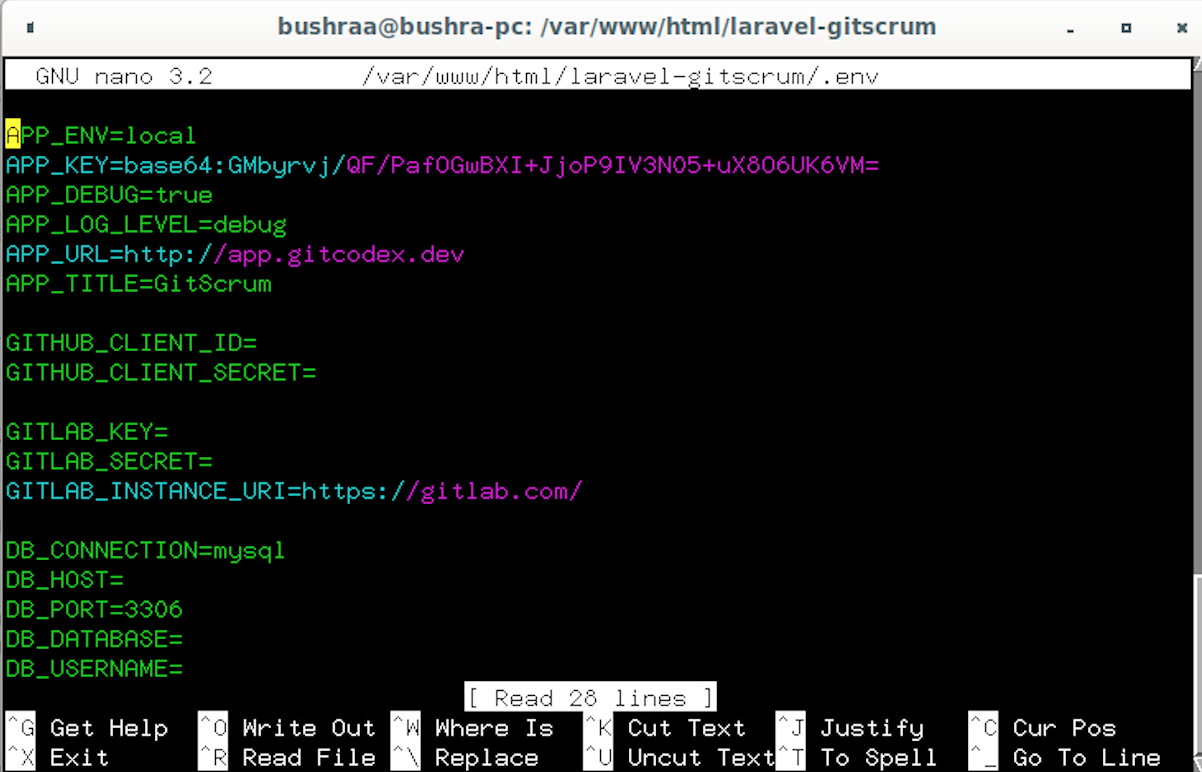 The next step is to use the Client ID and Client Secret from the application registration page and paste them into the .env file. Access the file using the following command: