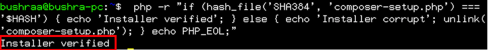 The phrase Installer Verified in the output shows that everything is running correctly.