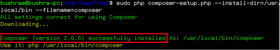 Composer is the supporting manager for the PHP package that is a must-have for our project. Download the composer file using the following command: