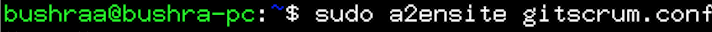 To configure the Apache virtual host for GitScrum, access the file using the following command: