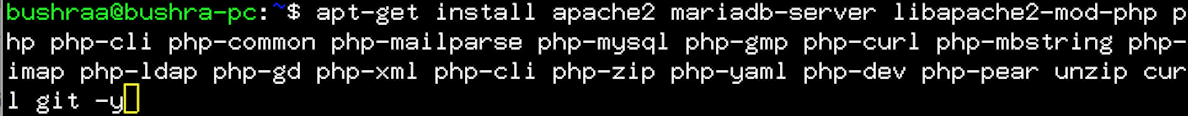 First, you will need to install an Apache webserver, MariaDB server, and PHP, along with the extensions that are needed for the LAMP server. To install the LAMP server, enter the following command: