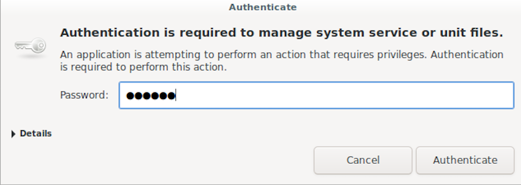 If the system asks for authentication, simply enter the password and click the Authenticate button.